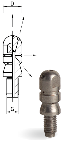 Düsen mit Außengewinde für die Aufnahme von Lanzen für manuelle oder maschinelle Reinigung.