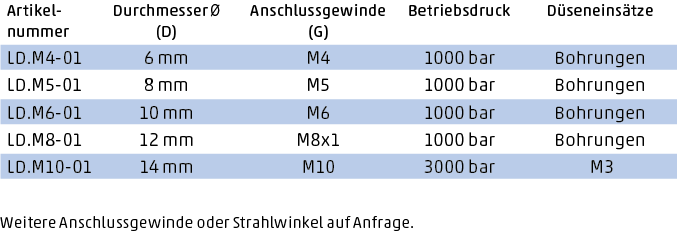 Düsen für Arbeitsdrücke von 1000 bis 3000 bar